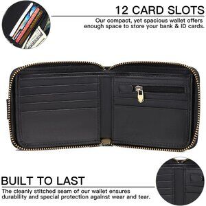 Mens Wallets Leather Large Capacity: 12 card slots + 2 cash compartments + 1 driver's license / ID/ photo window + 1 zip coin pocket. This wallet for mens is easy to carry important cards for your daily needs