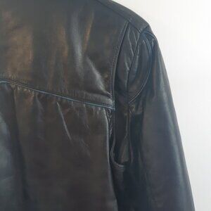 Rare and Discontinued Model, Perfect for Vintage leather lovers, Full-length double zipper, High collar, Side pocket with zipper, Missing label for size See measurements below. genuine leather in excellent condition.