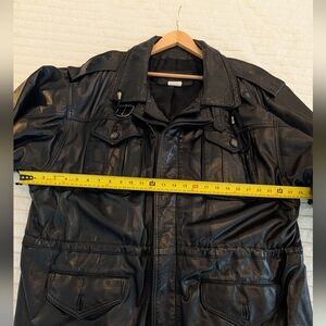 Elevate your wardrobe with this sleek black leather field jacket. Perfect for any occasion, it offers both style and durability.