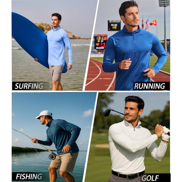 1/4 zipper: 1/4 zipper design, easy to put on and take off, and also provides extra sun protection for your neck.