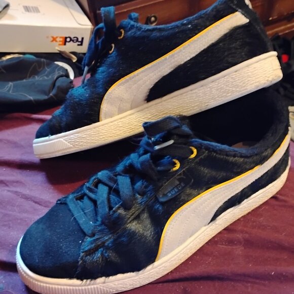 Men's Black Size 12 Puma Felix The Cat Faux Horsehair Suede Low Shoe