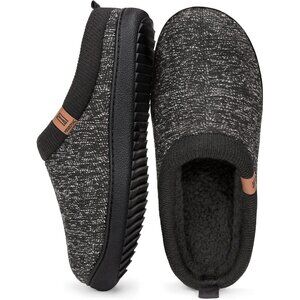 Men's Black Slip-on Slippers Comfy Memory Foam Closed-Toe Indoor House Shoes