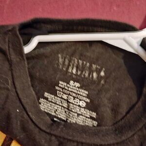 A men's black small t-shirt with a Nirvana graphic and logo on the front. Shirt has been worn but is still in very good condition.