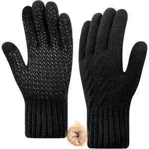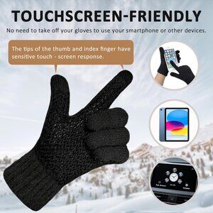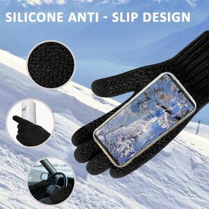 Men's Black Winter Warm Fleece Lined Anti Slip Knit Touch Screen Gloves