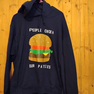 A men's black XL CPFM X Spongebob Squarepants X Uniqlo hoodie featuring a puff graphic and text that says "People Love Out Patties". Hoodie has been worn a handful of times, but is still like new.