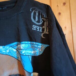 A men's black size XXL oversized (I think, it is missing the tag) t-shirt featuring a Tupac Shakur graphic on the front from Grind. Shirt has been worn and graphic is showing minor wear but it is otherwise in very good condition.