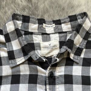 American Eagle Men’s Plaid shirt Size XL Worn but in good used condition. Fabric is extra soft and smooth. Super comfortable. Stylish black and white plaid men's shirt perfect for casual outings. Features a classic design with a comfortable fit. No Poshmark account? Sign up using the following code: ELENALK5 to receive $15 credit towards your purchase! Thank you for shopping! #AmericanEagle #MensFashion #PlaidShirt #MensStyle #MensXL #CasualStyle #SoftFabric #AmericanEagleMen #PrelovedFashion #ShopMyCloset #ResellFashion #ComfortWear #AEOutfit #SecondhandStyle #SustainableStyle