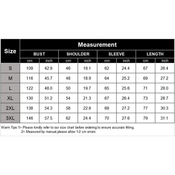Size Info:please kindly check Our Size Chart in Left Product Pictures carefully before order (Not the Amazon Size Chart)and choose the right size based on the CHEST and SHOULDER.