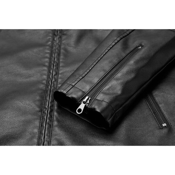 Men's Black0073 Stand Collar Leather Motorcycle Lightweight Faux Leather Jacket
