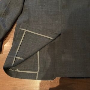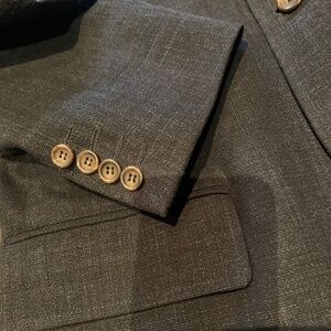 Very good condition men's blazer by Italian brand Brookfield. Very good workmanship and high quality fabric. Dark navy colour. Fabric: 45% polyester-40% wool-15% linen.