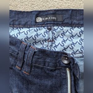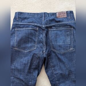 Classic deep blue denim jeans perfect for any casual occasion. Durable and stylish wide leg fit. minor scuff in the back of the bottom legs barely noticeable. Still has its original shine
