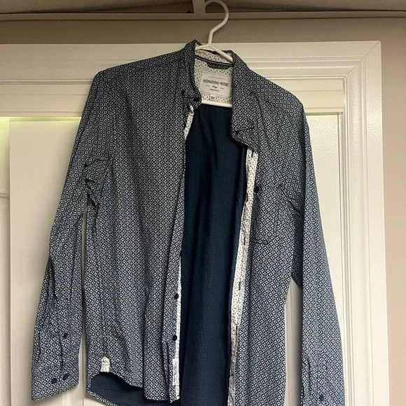 Stylish men's jacket featuring a blue geometric pattern. Perfect for adding a touch of sophistication to any outfit.
