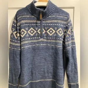 Light blue patterned quarter-zip sweater by WindRiver (Mark’s Work Wearhouse brand).
