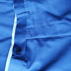 Elevate your style with this sleek blue suit. Perfect for any formal occasion. Shell, 52% wool, 48% polyester. Whining, 100% polyester. Length 29.5 sleeve 25. Waistband 40.