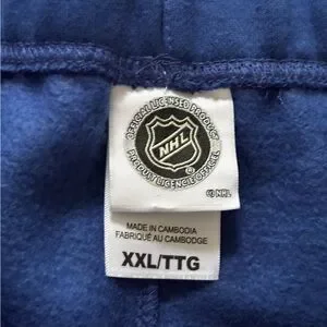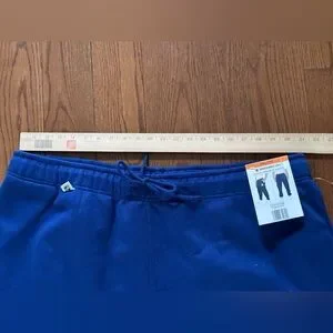 Comfortable blue sweatpants with drawstring waist and cuffed ankles. Features logo for fan style. Soft, breathable fabric for everyday wear. Includes convenient pockets and relaxed fit. Brand new pants, worn for an evening then washed. Hoping for some shrinkage as they are extremely big. Didn't happen!