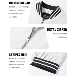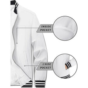 Men's Bomber Jacket Lightweight Casual Spring Fall Windbreaker Zip Up Coat-White
