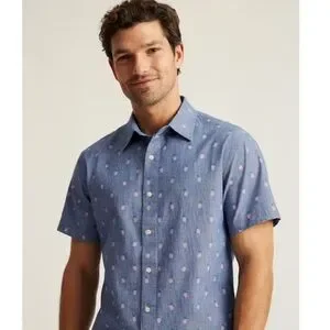 Super summer-y, and trendy men’s Bonobos button-up short sleeve t-shirt. Fits a bit small. Very lightly worn.