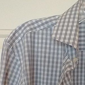 Men's Boss Hugo Boss X Nordstrom button up long sleeve slim fit - size 39 (ie fits like a medium), neck size 15.5. Patterned (checkered) dress shirt - colors are white, black, charcoal grey and blue. Great for the office or dinner out. Previously worn - great condition, not excellent, only because fabric description / washing instructions tag was removed. Otherwise, no signs of wear (no stains, no marks). For washing, recommend gentle/delicate cycle with cold water.