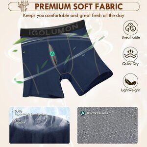 HIGH-QUALITY MATERIAL - Made of 95% rayon made from bamboo and 5% spandex, these mens boxer briefs deliver exceptional breathability and cool comfort, surpassing traditional cotton underwear. Ultra-soft and gentle on skin, the mens underwear also actively wicks moisture away, maintaining dryness and comfort throughout the day.