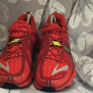 Red yellow and black sneakers by Brooks