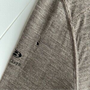 Please Note: there is a small hole above the icebreaker logo on the left sleeve as can be seen in the photos.