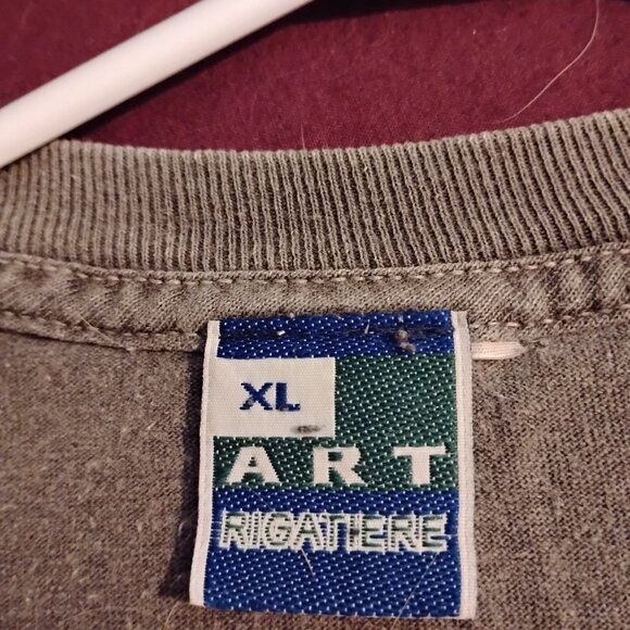 A men's brown vintage XL t-shirt featuring a biker/gangster dog logo on the front and a large dog graphic on the back. Shirt has been worn but is still in very good condition.