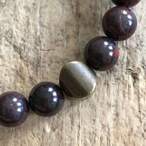 Men's Burgundy Jasper Gemstone Bracelet Brass Accent Bead - 10mm Beads
