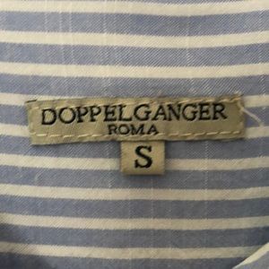 Men’s priest collar white and blue striped button up shirt. Bought in Rome and only worn once (couldn’t convince him to wear it again- he said it’s too European 😂)