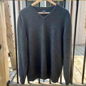 Very nice men's CLUB ROOM 100% cashmere V neck sweater in dark gray. Size on tag is XXL but please refer to the measurements below.