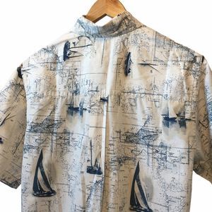 Men's CROSSING Cream Sailboat Print Button Up Shirt