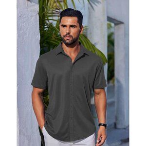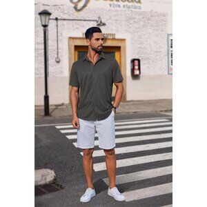 ❤️Mens Casual Button Down Shirts Short Sleeve Wrinkle Stretch Dress Shirt