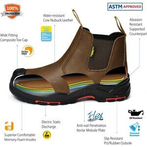 🆕 Men's Chelsea Work Boots Composite Toe Waterproof Leather Slip-On Safety