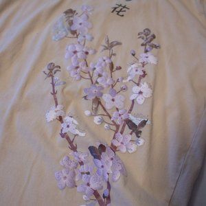 This is one of my favorite shirts with cherry blossoms on it from SHEIN. Unlike some products from SHEIN the material is actually really comfortable 100% cotton, and the design is so cool being from Japan myself. The Japanese text I believe says "Sakura No Hana" which translates to "Cherry Blossoms". Originally a Large, but its started to not fit me at 6'2 with multiple washes, but I don't think it would shrink anymore. Perfect for a boyfriend shirt or with a earthy toned fit. I've gotten a lot of compliments on this in the past!