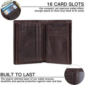 🆕Men's Coffee Leather RFID Bifold Wallet Large Capacity Credit Card Holder