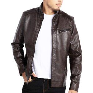 Men's Coffee1301 Stand Collar Leather Motorcycle Lightweight Faux Leather Jacket