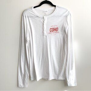 Mens Coho Apparel Logo Artisan Melange Henley Long Sleeve Shirt White Size Small