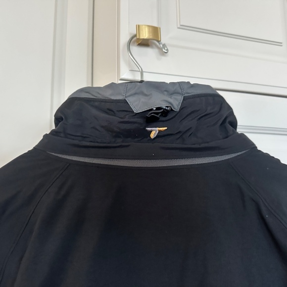 Darker than photos show. Black. Beautiful high end Winter Ski Jacket with all of the features that you want! Medium warm, Omnitech breathable, water resistant etc. Completely detachable hood, zips vents and adjustments galore. Easy care machine wash. Clean, non smoking, no pets home. Freshly laundered. Be sure to check my other listings too!