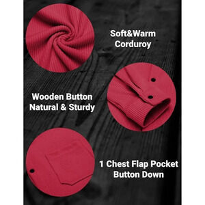 Men's Corduroy Shirt Casual Shacket Long Sleeve Button Down Jacket-Red