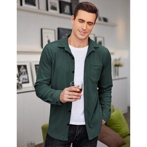 ❤️ Men's Corduroy Shirt Shacket Long Sleeve Button Down Lightweight Jacket Green