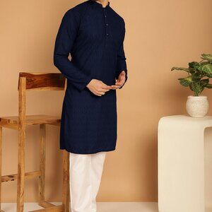 Men's Cotton Chikankari Navy Blue Regular Fit Kurta Pyjama Set