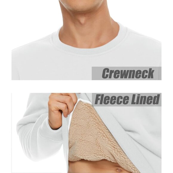 Mens Crewneck Sweatshirt Fleece Lined Warm White Outdoor Long Sleeve Pullover