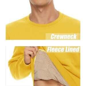Mens Crewneck Sweatshirt Fleece Lined Warm Yellow Outdoor Long Sleeve Pullover