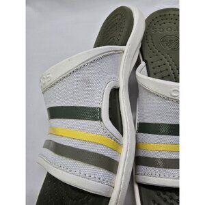 Mens Crocs Slip On Sandals Sobek 9 White/Green Stripes Canvas Slide Sandals