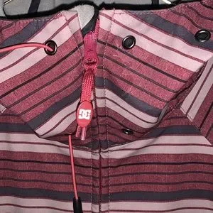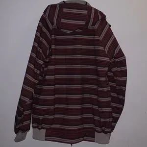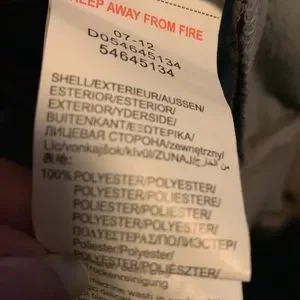 GUC size large waterproof jacket with interior snow guard not very thick but good for layering fleece lined pit ventilation