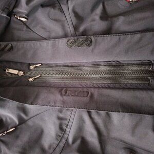 Hood, details on sleeves, multiple external and internal pockets, zipper vents for air flow, all zippers in good working order