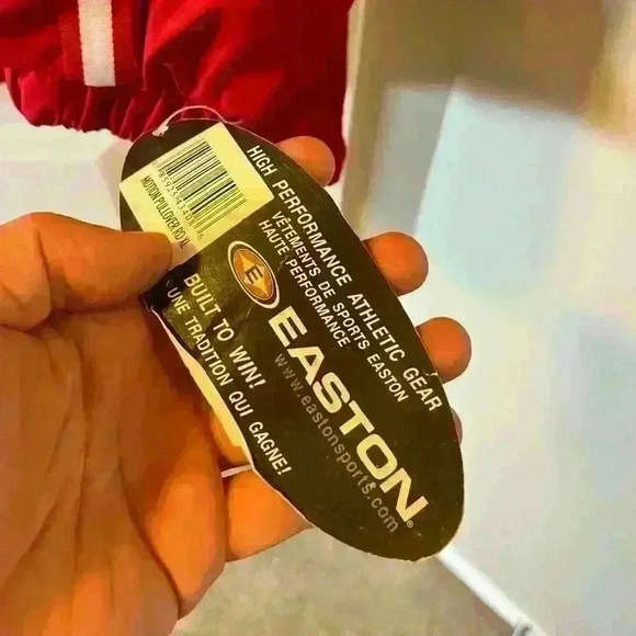 Brand new with tags mens Easton Softball/Baseball pullover windbreaker size XL. Midweight feel with a mesh inside perfect for those playing fall ball and need an extra level of protection from the wind and water! Measures 27-28” pit to pit and 31” top to bottom. Has zippered front pockets as well.