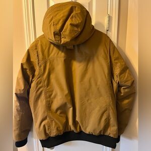 Mens Eddie Bauer Superior Down Waterproof Bomber winter jacket size large in excellent like new condition. Features 650 down fill power. Colour is tan. This is an excellent winter jacket that provides not only great warmth but style and comfort. **Missing the fur zipper trim on hood**. Sold out on Eddie Bauer website. Has multiple pockets including 2 front, 2 chest, 1 sleeve and 1 inner zipper pocket. Measures approx 24” pit to pit and 30” top to bottom. Check out more on Eddie Bauer website.