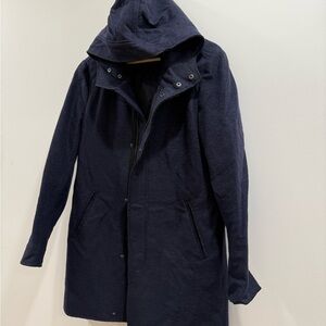 Stay stylish and protected with this elegant navy trench coat. Perfect for any occasion.