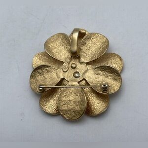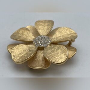 Men’s Flower Brooch Pin- Premier Designs Rhinestone Pendant Texture Gold tone