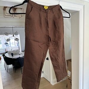 GOLF WANG Brown Grand Logo Linen Trouser Pant - Size 38